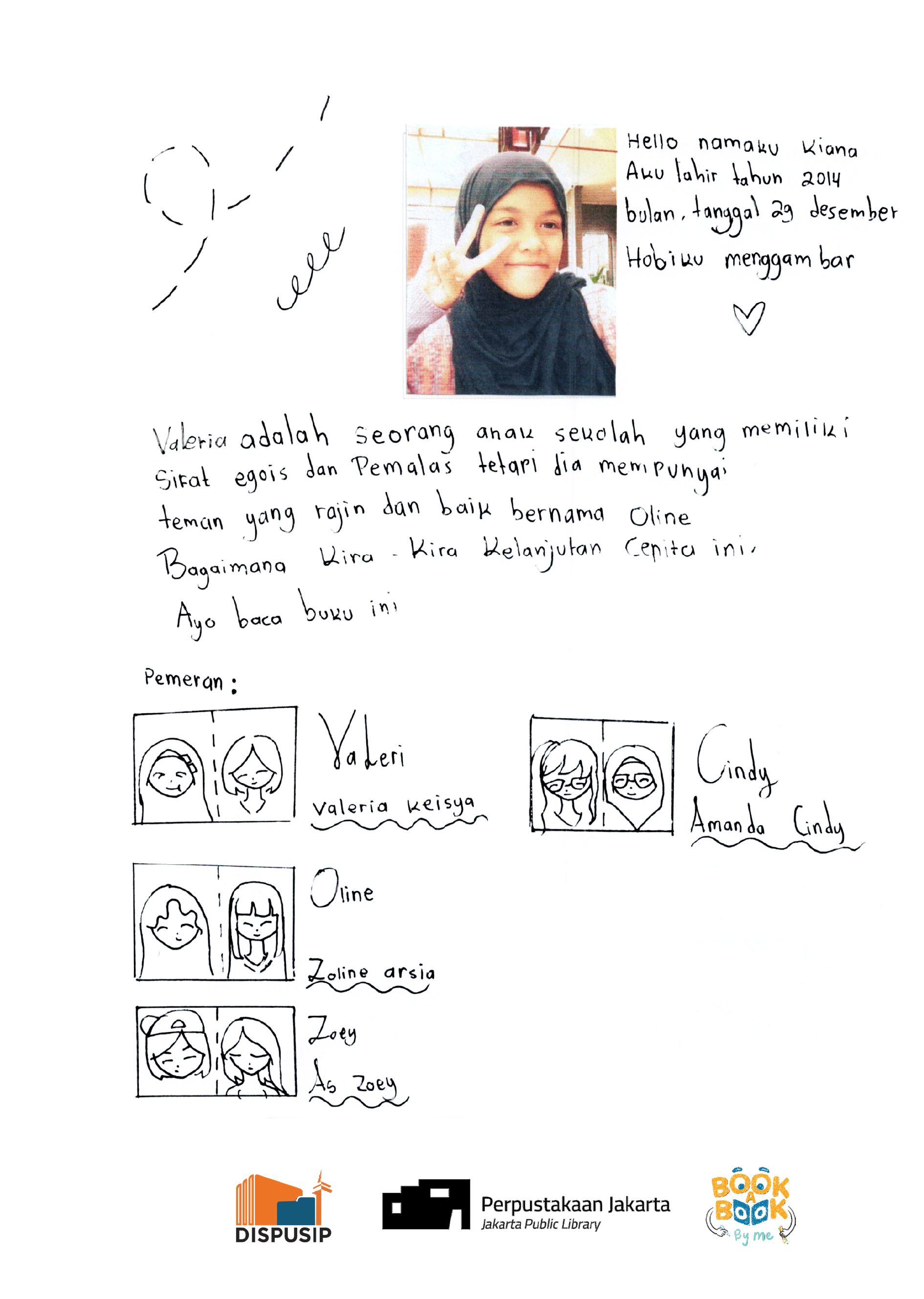 Hello namaku Kiana Aku lahir tahun 2014 bulan, tanggal 29 Desember Hobiku menggambar 🤍 Valeria adalah seorang anak sekolah yang memiliki sifat egois dan pemalas tetapi dia mempunyai teman yang rajin dan baik bernama Oline. Bagaimana kira-kira kelanjutan cerita ini? Ayo baca buku ini!