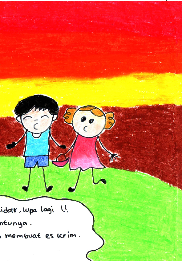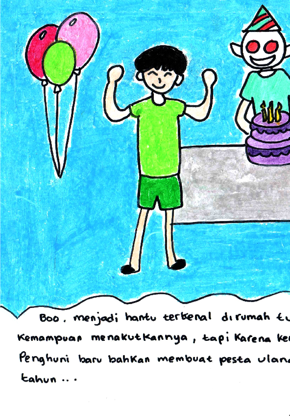 "Hai teman-temanku, namaku Zian. Nama lengkapku ZILDJIAN MUHAMMAD TAHER. Umurku 10 tahun kelas 3 SD dari SD N Malaka Jaya 01. Hobiku menggambar, bongkar pasang lego. Ini karya pertamaku. Semoga teman-teman suka ya. Terimakasih