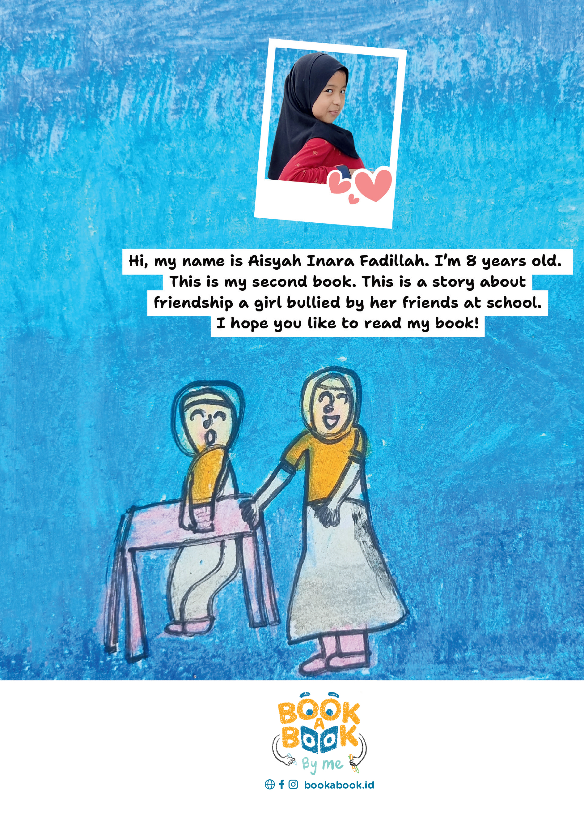 Hi, my name is Aisyah Inara Fadillah. I'm 8 years old. This is my second book. This is a story about friendship a girl bullied by her friends at school. I hope you like to read my book!