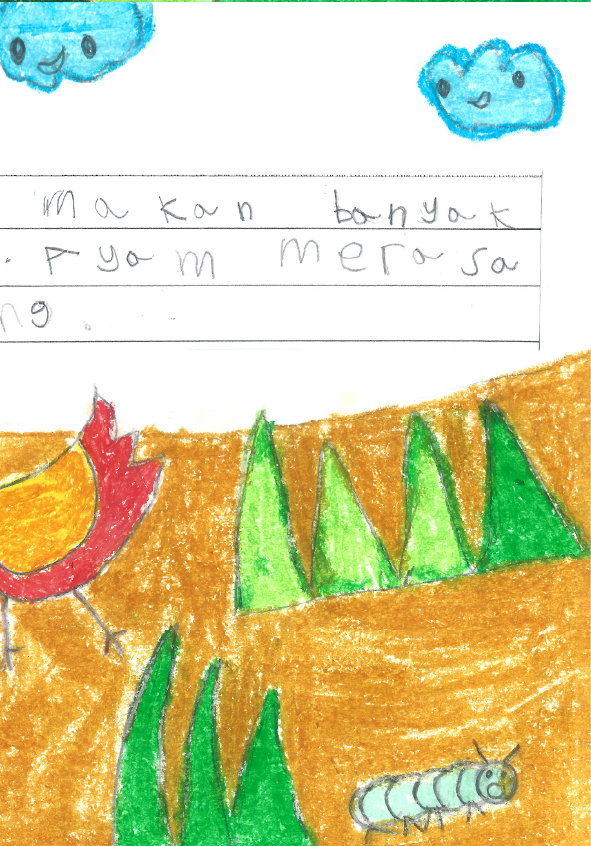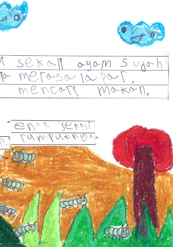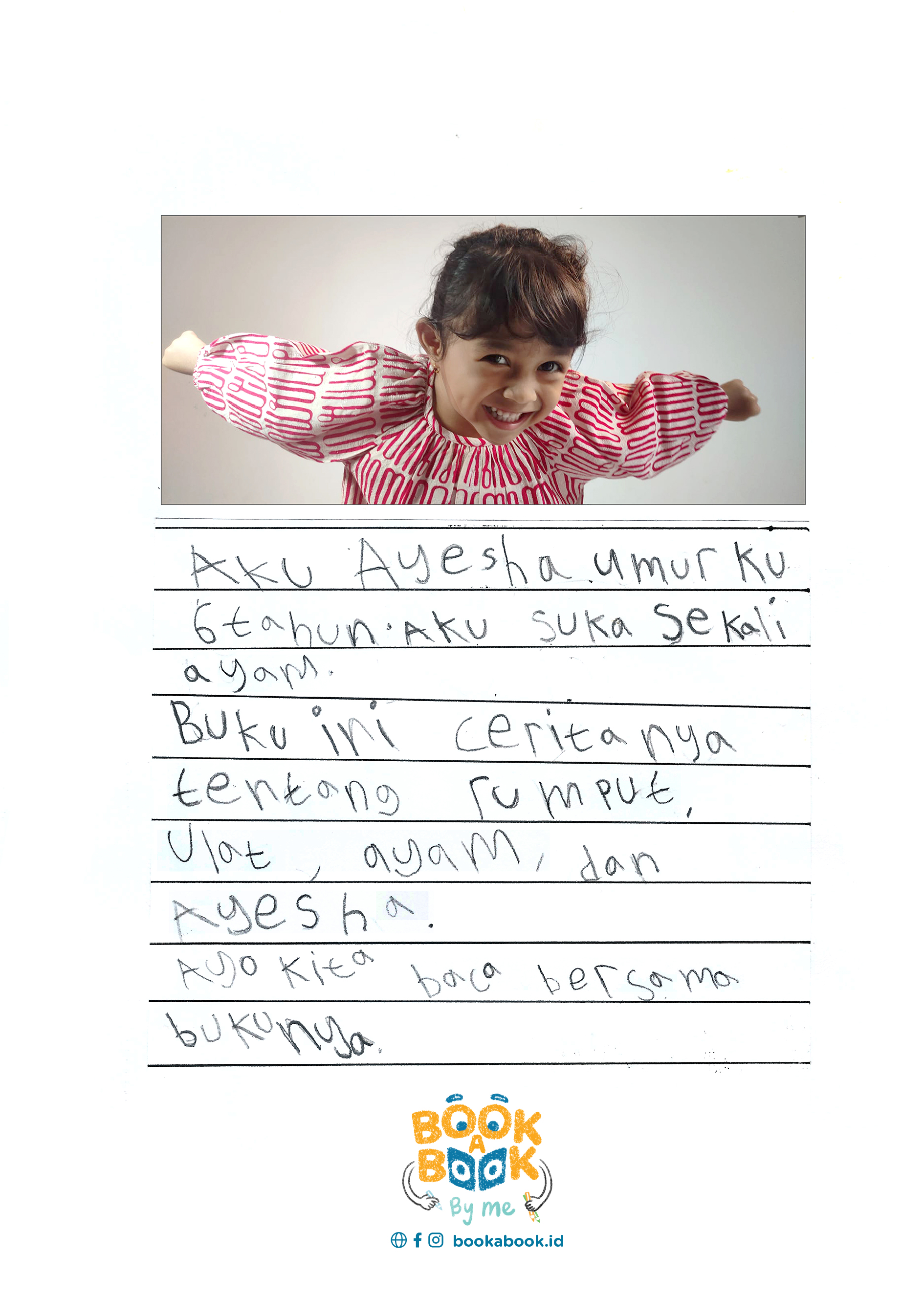 Aku Ayesha, umurku 6 tahun. Aku suka sekali ayam. Buku ini ceritanya tentang rumput, ulat, ayam, dan Ayesha. Ayo kita baca bersama bukunya