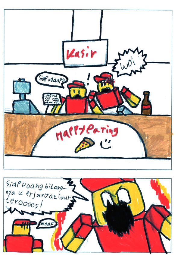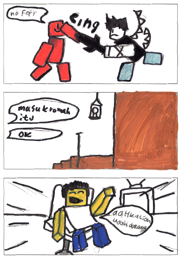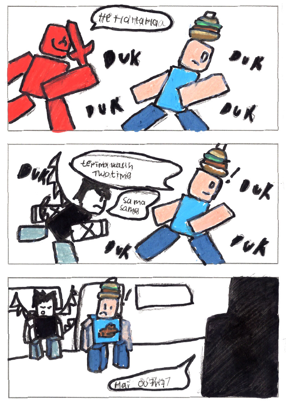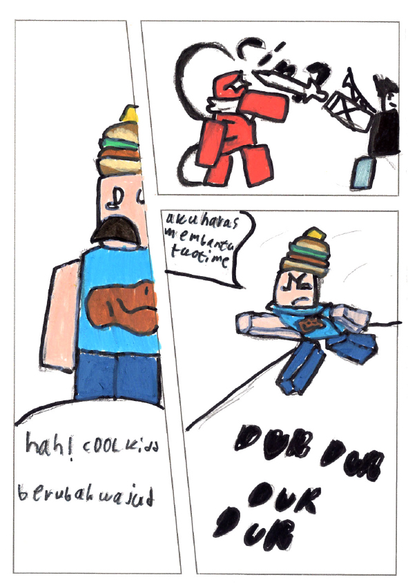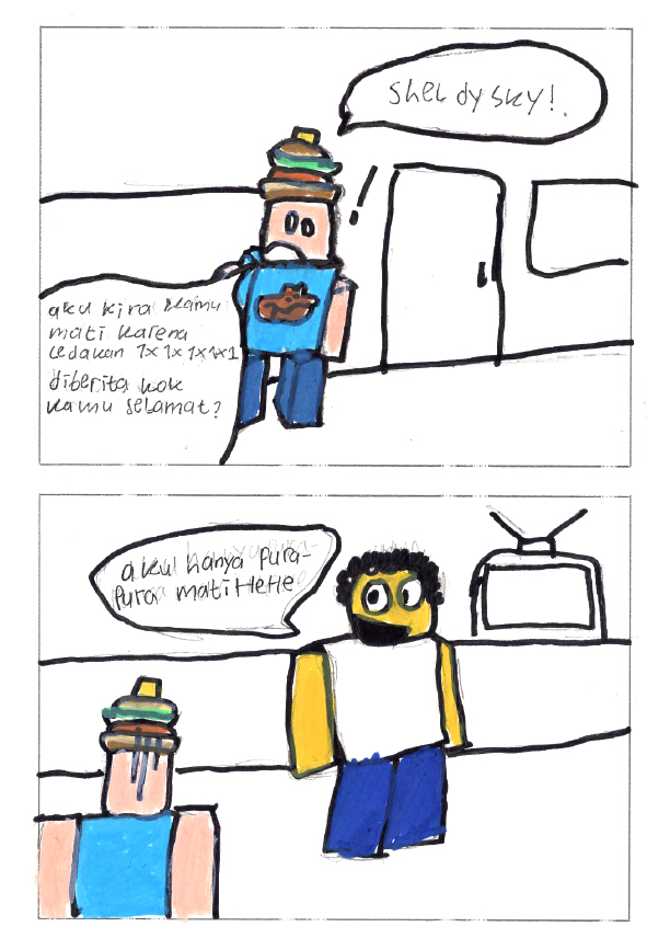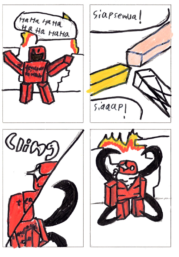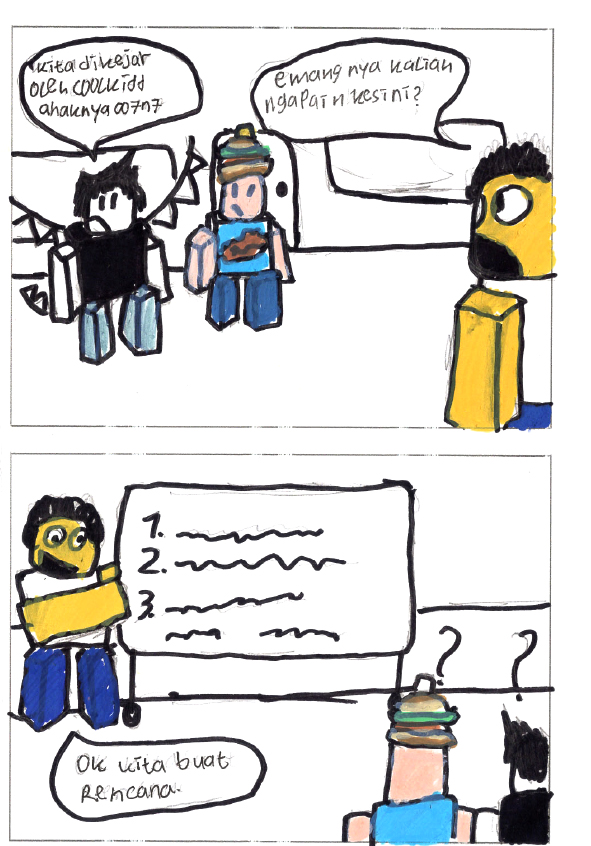 Aku lagi bikin komik baru, inspirasinya dari game Roblox yang judulnya Forsaken. Ceritanya tentang anak yang ditemukan dalam kotak. Waktu dibuka, ternyata ada bayi cowok di dalamnya, matanya nyala warna merah kayak karakter Coolkidd di Roblox. Si penemu tinggal sendirian, jadi dia ngerasa kayak jadi ayahnya. Setiap hari diajarkan cara ngomong, belajar dan main game. Rasanya kayak punya keluarga beneran. Dulu dikira hidup bakal sepi, tapi sekarang punya temen sekaligus ayah yang selalu ada buat main bareng. Hari itu, Coolkidd janji dalam hati kalau kita bakal terus bareng-bareng, nggak bakal ada yang “forsaken” lagi