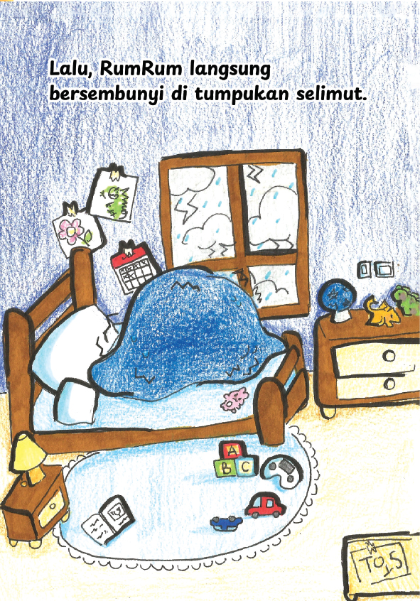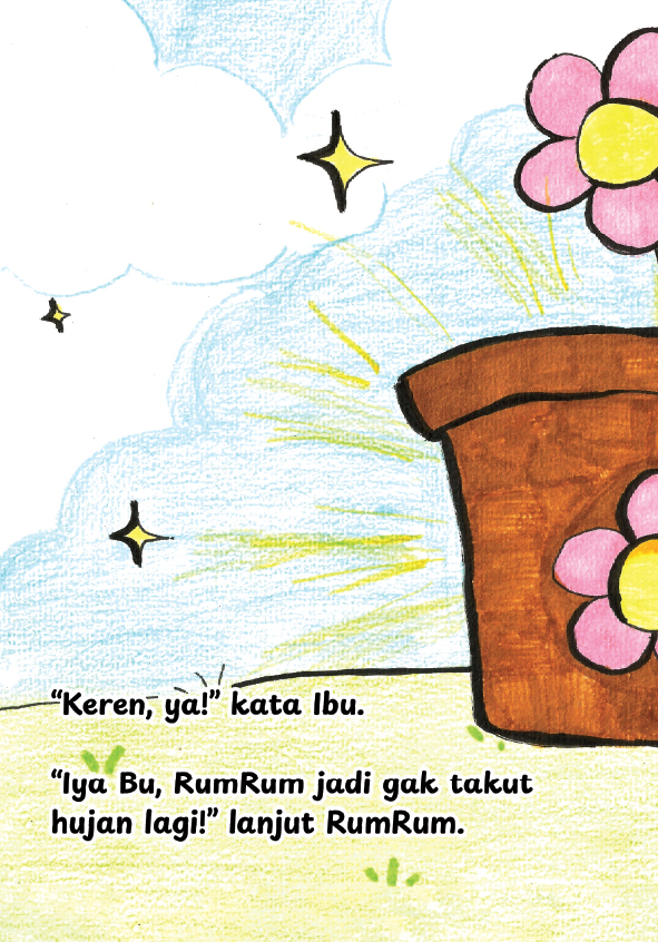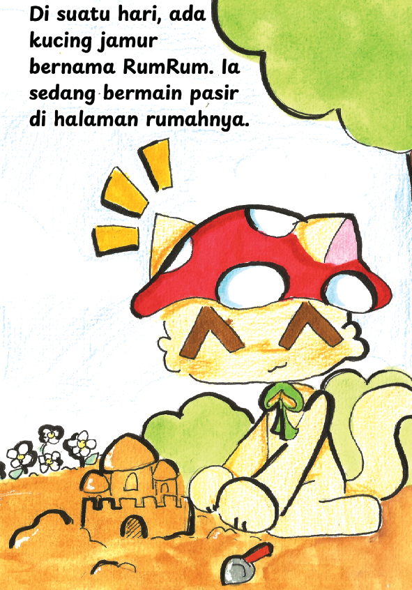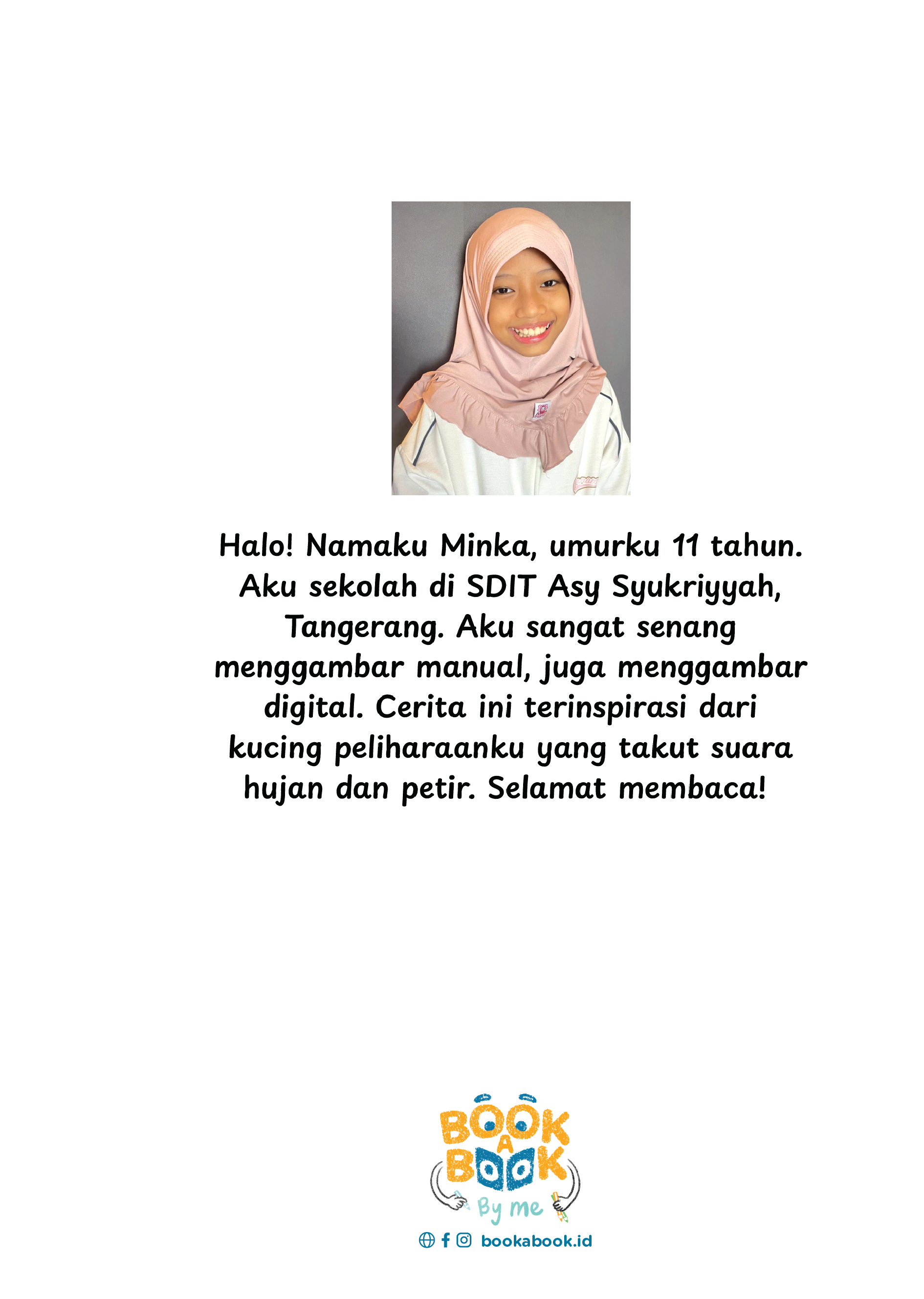 Halo! Namaku Minka, umurku 11 tahun. Aku sekolah di SDIT Asy Syukriyyah, Tangerang. Aku sangat senang menggambar manual, juga menggambar digital. Cerita ini terinspirasi dari kucing peliharaanku yang takut suara hujan dan petir. Selamat membaca!