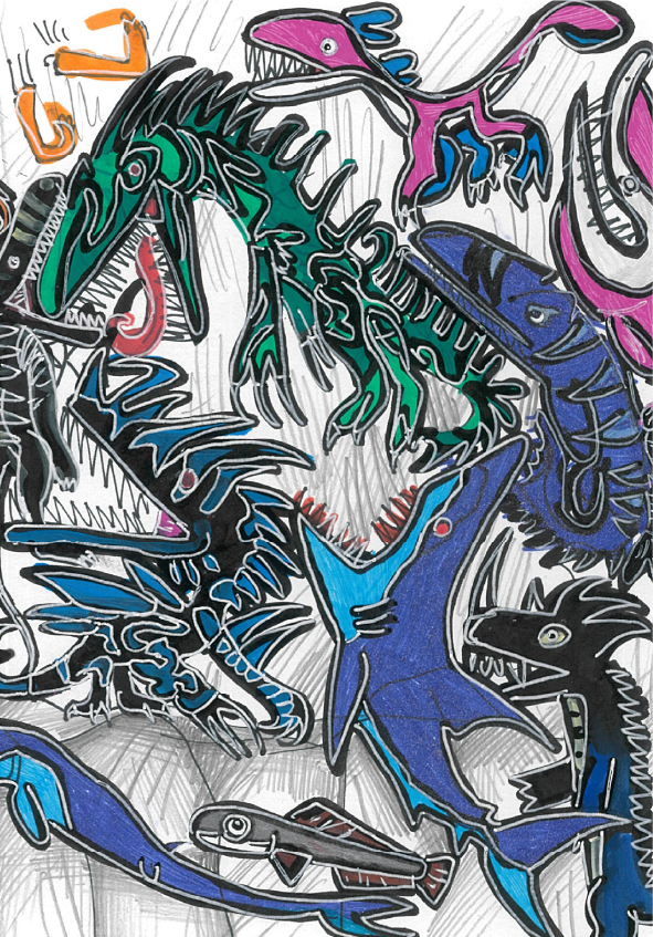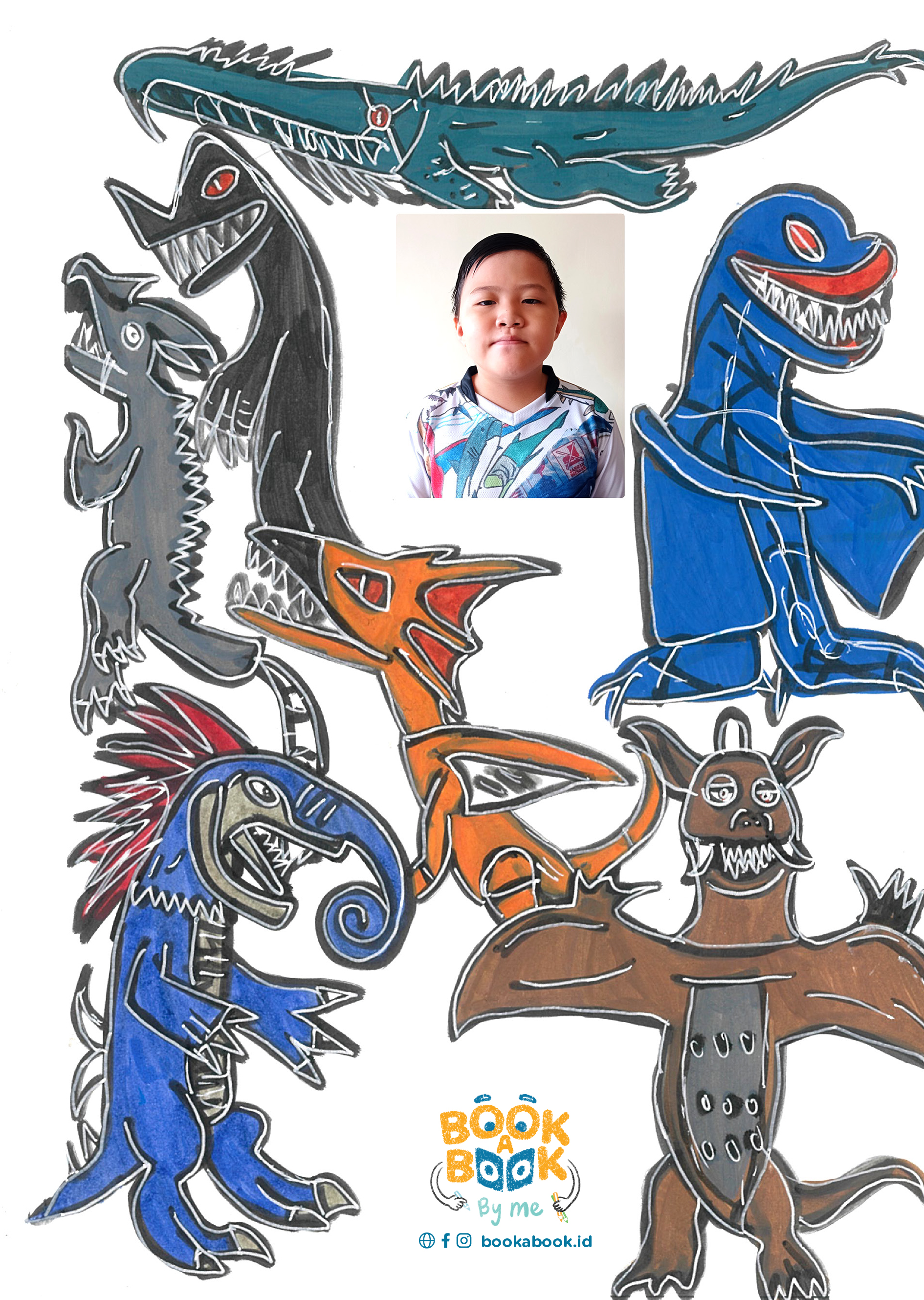 Aku senang menjelajah dunia dinosaurus, aku juga senang menjelajahi isi lautan dan juga monster-monster lawan para Ultraman. Aku senang bercerita lewat gambarku, jadi teman-teman..selamat menikmati buku bergambar ku, yang menceritakan tentang berbagai jenis dinosaurus dan monster dalam berbagai lingkungan dan tema yang berbeda-beda di setiap halamannya. Selamat datang di dunia para monster!