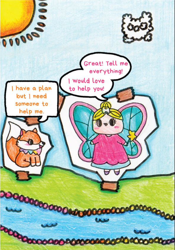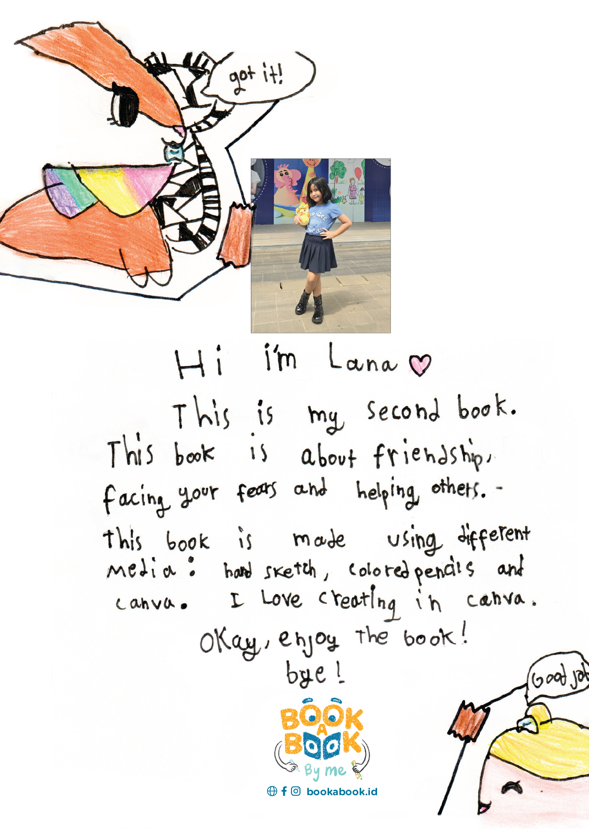 Hi, I'm Lana <3 This is my second book. This book is about friendship, facing your fears, and helping others. This book is made using different media: hand sketch, colored pencils and Canva. I love creating in Canva. Okay, enjoy the book! Bye!