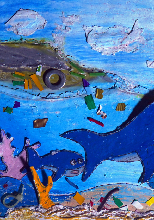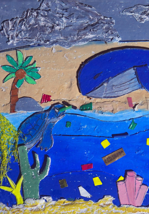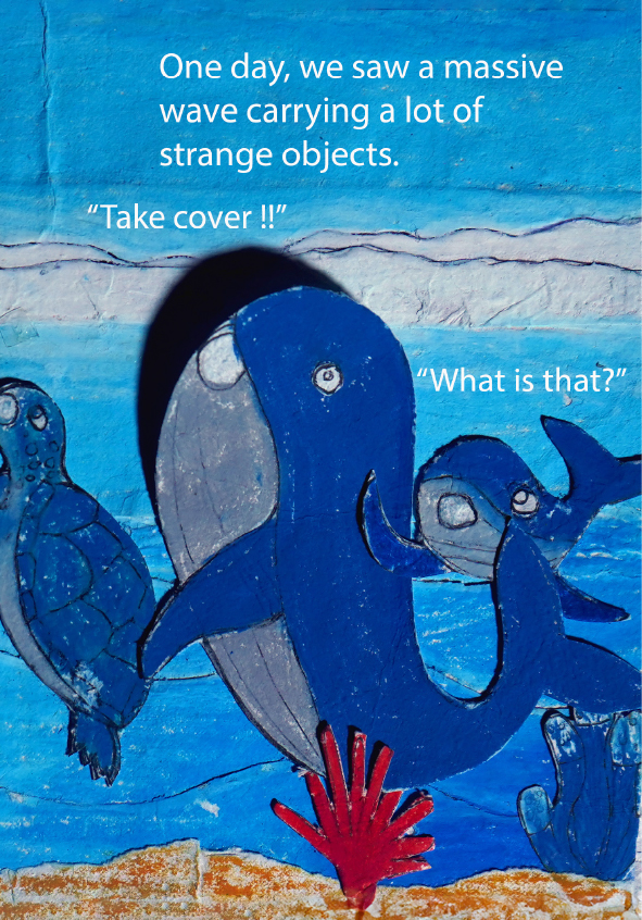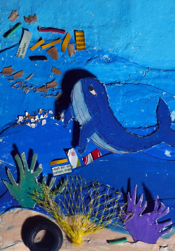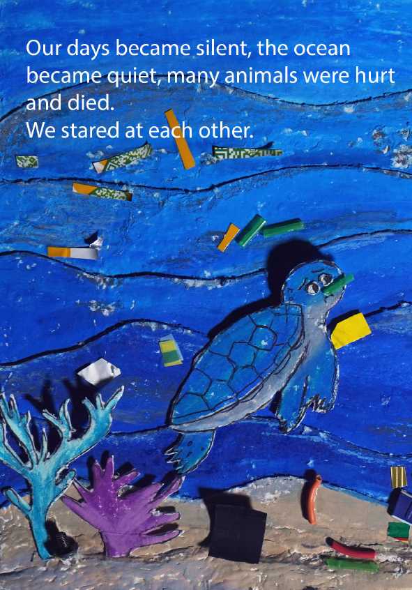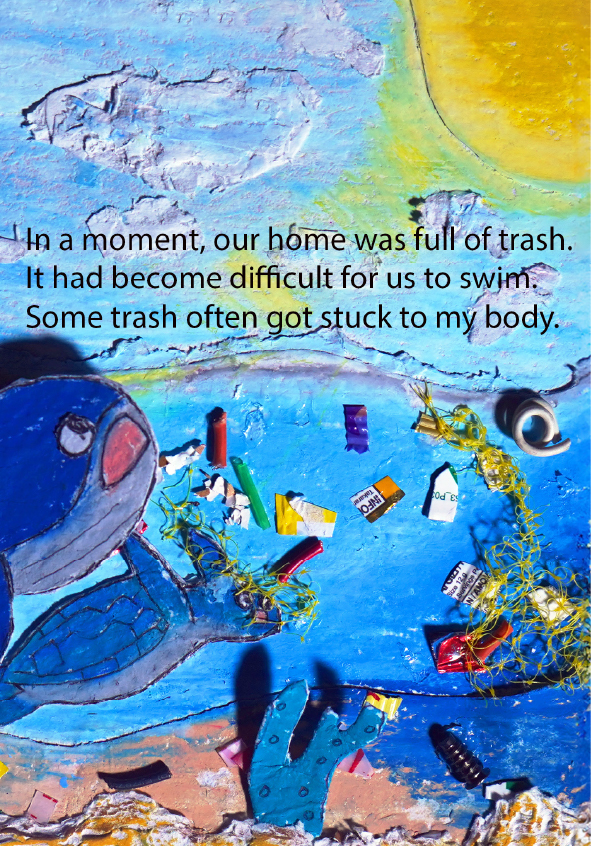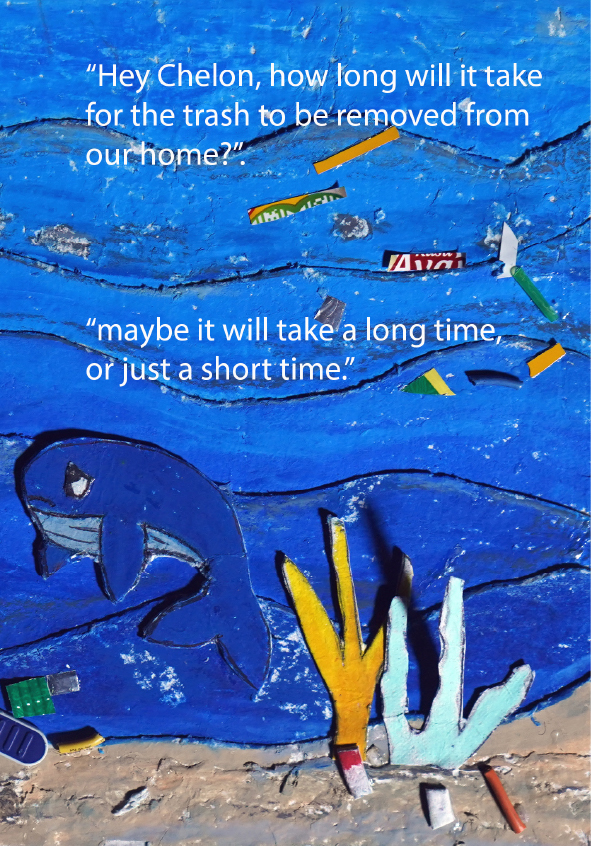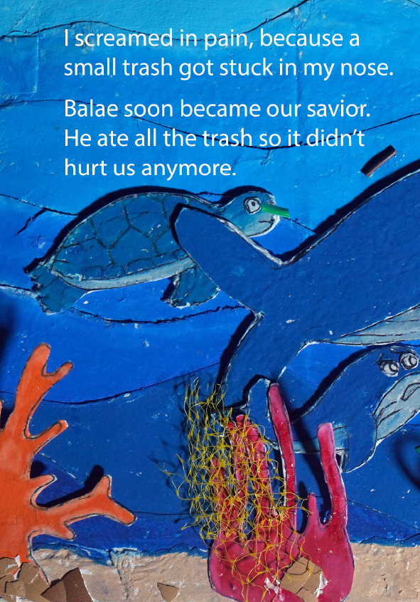 I'm Gibral, 11 years old. This is my fourth book. There's something special in this book, because I made the illustrations using recycled paper that I made myself. I made the illustrations with all my heart. Sea turtles and whales live in the vast and beautiful ocean. Let's dive into the wide ocean to discover the story of the friendship between Chelon and Balae.