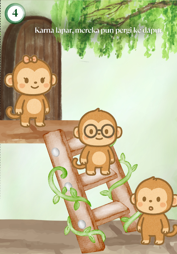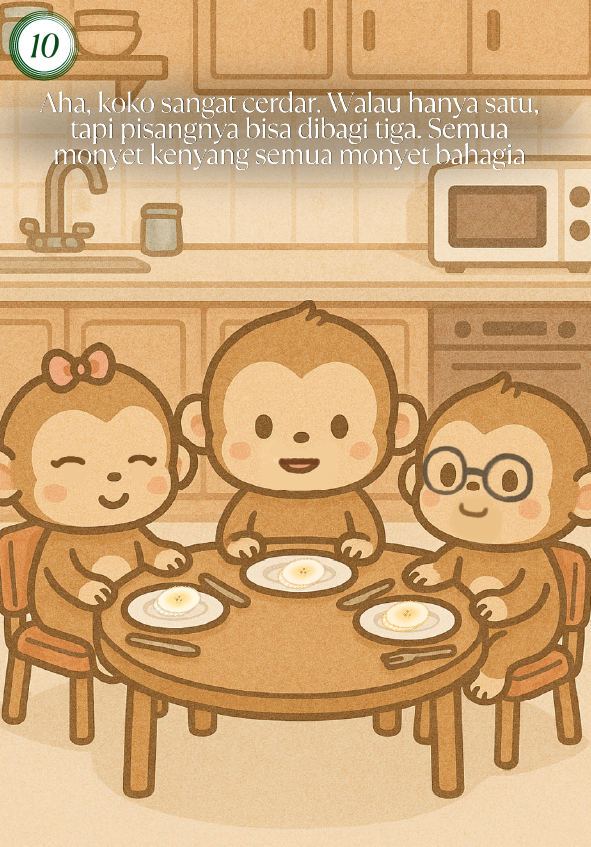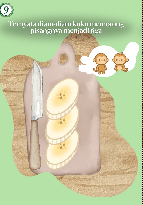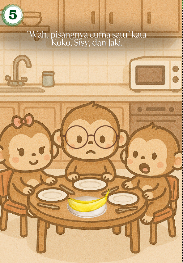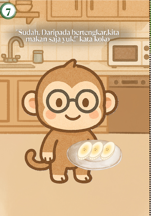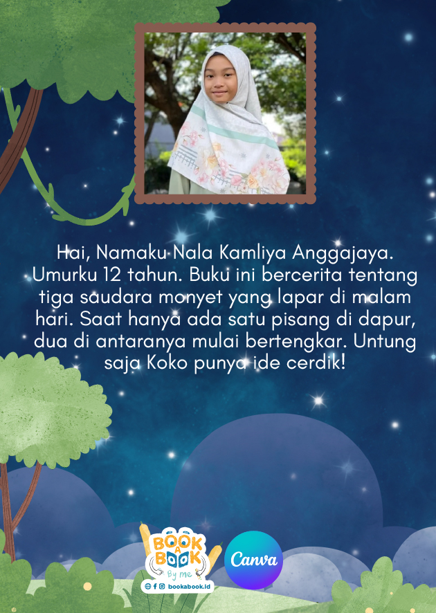 Hai, Namaku Nala Kamliya Anggajaya. Umurku 12 tahun. Buku ini bercerita tentang tiga saudara monyet yang lapar di malam hari. Saat hanya ada satu pisang di dapur, dua di antaranya mulai bertengkar. Untung saja Koko punya ide cerdik!