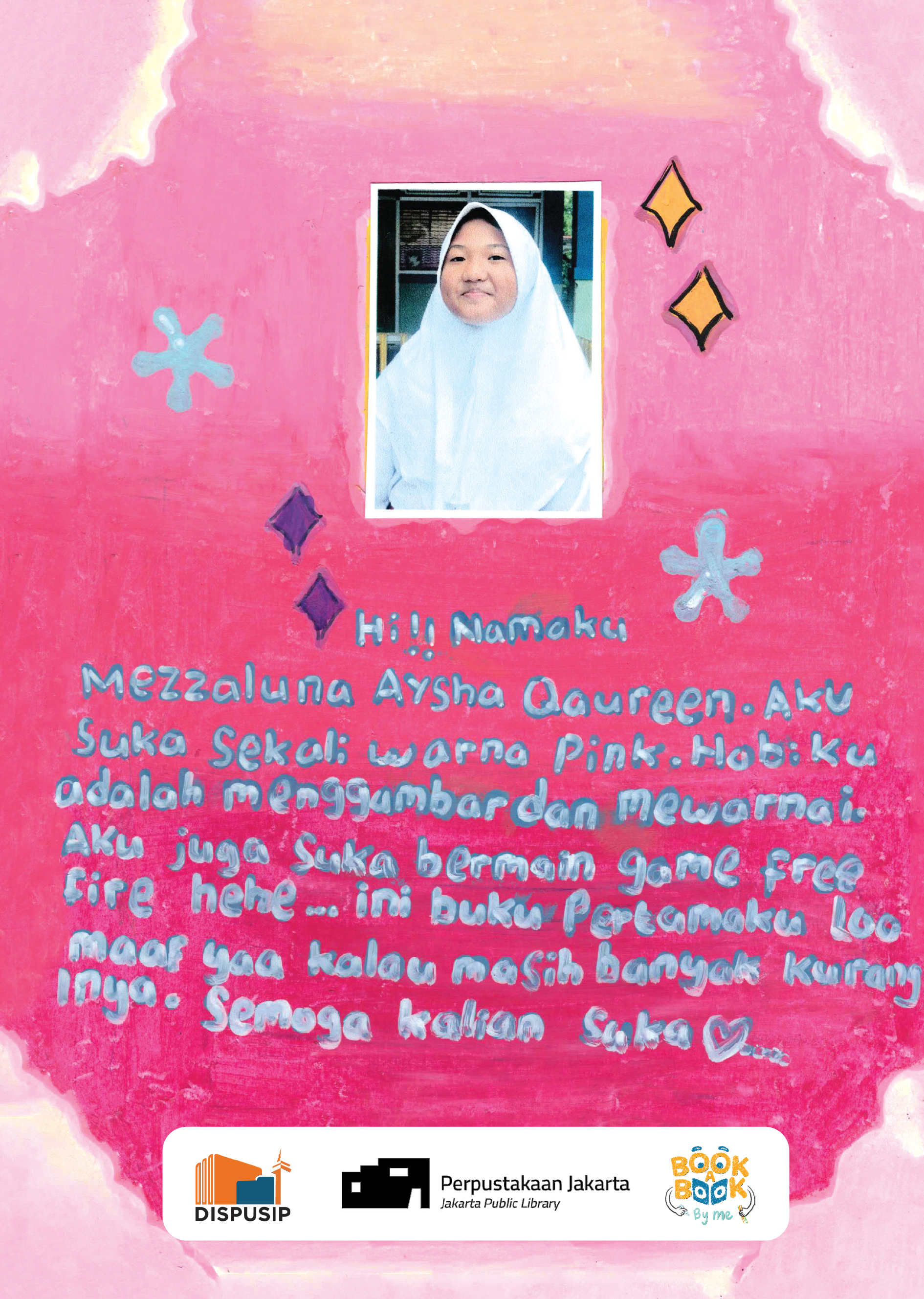 HI Nama ku Mezzaluna Aysha Qaureen. Aku suka sekali warna pink, hobiku adalah menggambar dan mewarnai. aku juga suka bermain game free fire hehe... ini buku perta,aku loo. maaf yaa kalau masih banyak kurangnya. semoga kalian suka