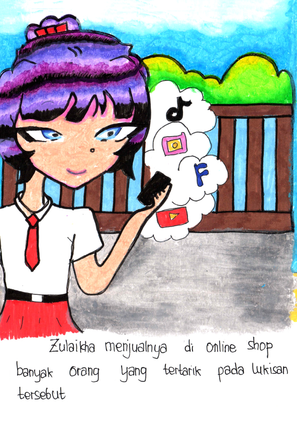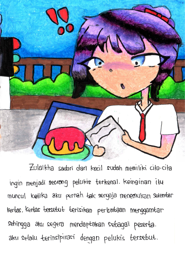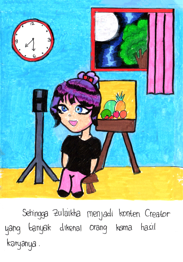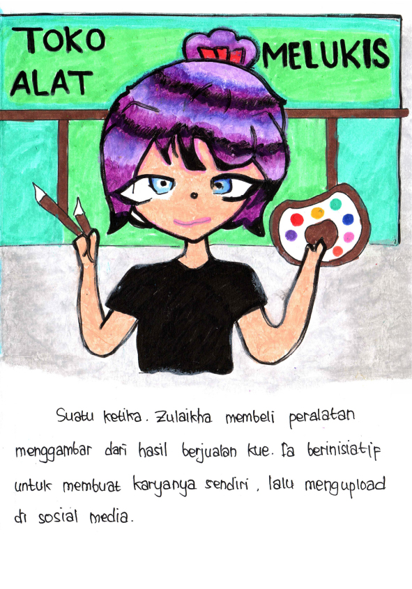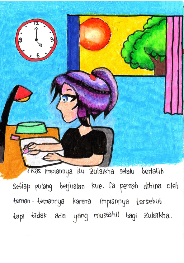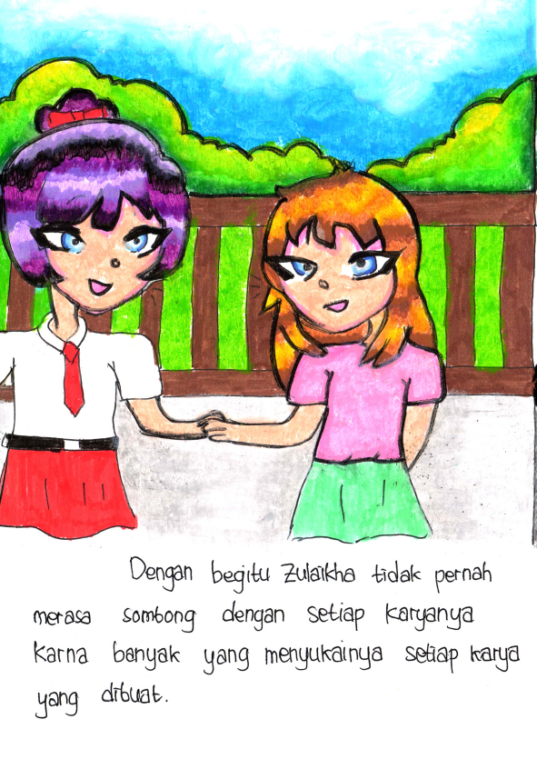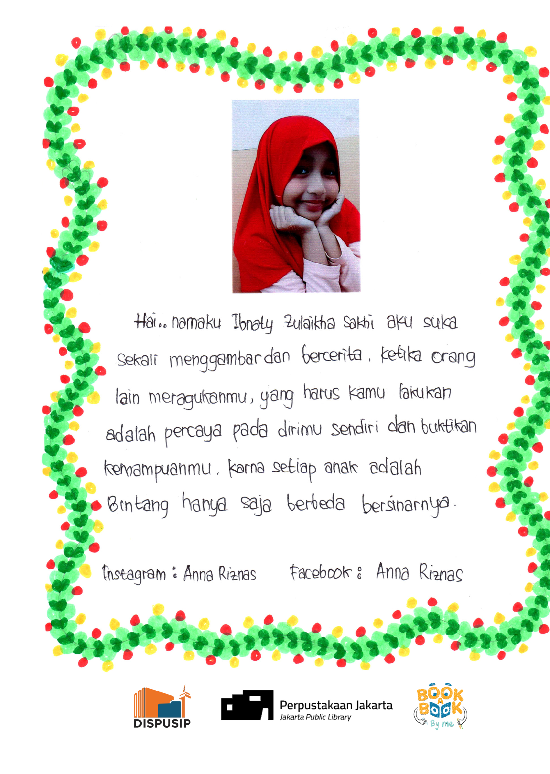 Hai.. namaku Ibnaty Zulaikha Sakhi aku suka sekali menggambar dan bercerita, ketika orang lain meragukanmu, yang harus kamu lalukan adalah percaya pada dirimu sendiri dan buktikan kemampuanmu, karna setiap anak adalah Bintang hanya saja berbeda bersinarnya.